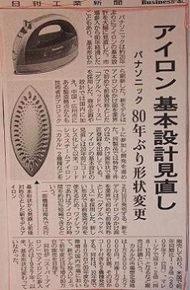 ところで、日刊工業新聞(2010.1.14付け)を読むと、なかなか興味深い記事が掲載されていた。パナソニックでは、約20年ぶりにアイロンの基本設計を大幅に見直し基本形状から刷新したとのことだ。